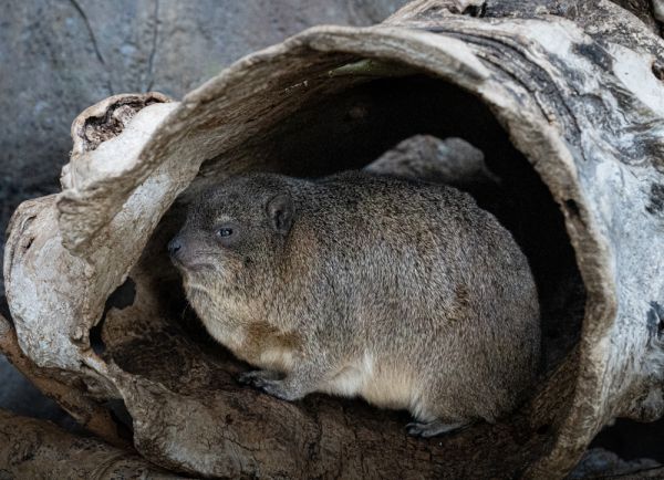 Rock hyrax, self-framed. Shot at the Calgary Zoo, ISO 22800, 82mm, f/5.6, 1/500 sec.
