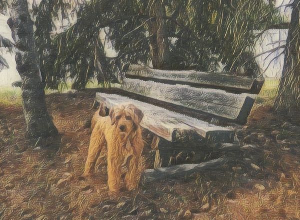 This is Molly by my fav bench, taken with my phone and edited with pencil draw filter.