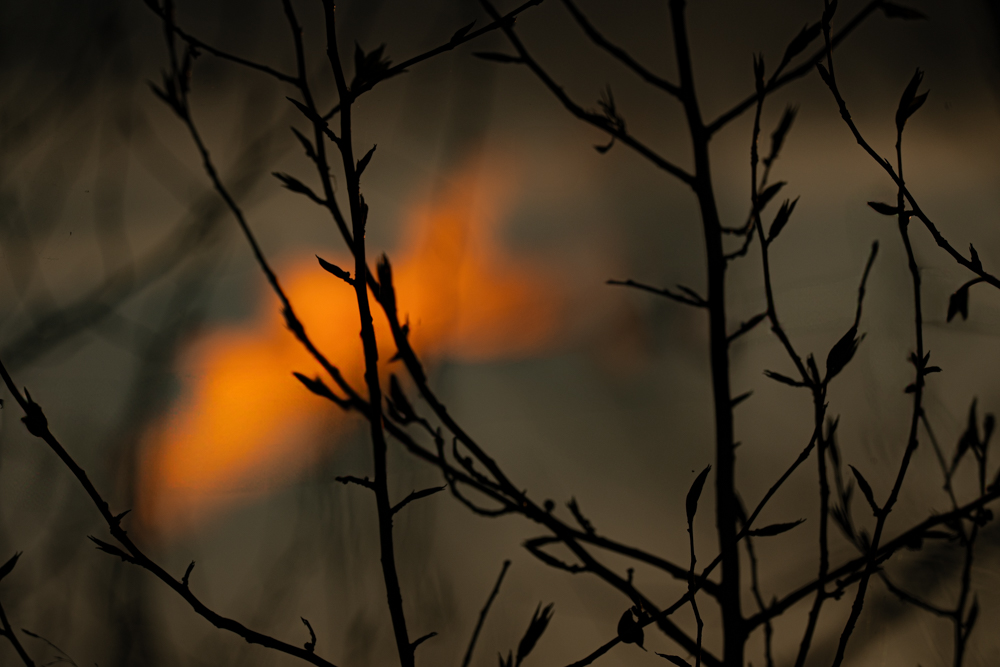 Gas flare near Inglewood Bird Sanctuary – I like the sharp silhouetted leaves against the soft flame. ISO 180, 560mm, f/11, 1/1250 sec.