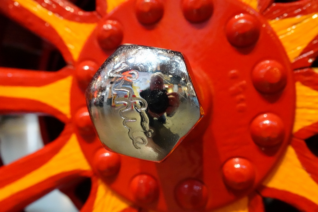 Reflection in a wheel hub.