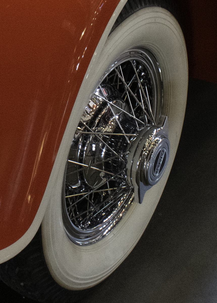 A 3D view of the classic Cord spoke wheel Nikon 3500 f8 1/30 sec iso 2800