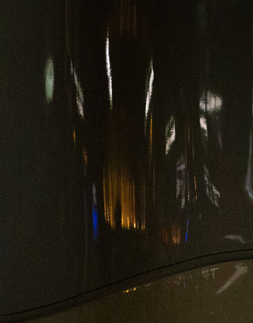 First abstract. Reflections taken from a vintage grey sedan in the basement. A somewhat darker area.